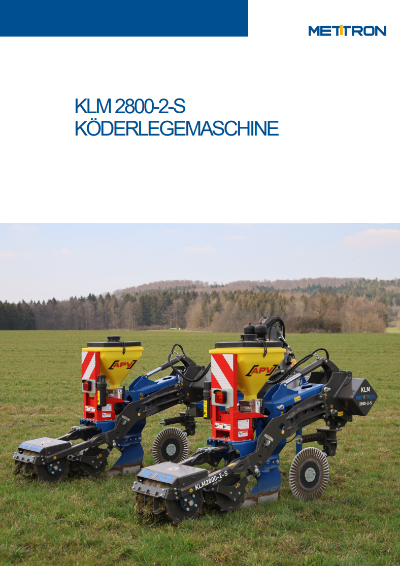 Die KLM 2800-2-S ist eine speziell entwickelte Maschine zur effektiven Bekämpfung von Feldmäusen. Sie legt unterirdische Gänge mit weniger als fünf Zentimetern Durchmesser an, in denen Köder präzise und sicher platziert werden. Dank der integrierten Steinsicherung und des negativen Unterzugs arbeitet die Maschine auch zuverlässig in steinreichen Böden, ohne Schäden zu verursachen. Nach der Ausbringung verschließt eine Andruck- und Führungswalze die Gänge zuverlässig, sodass andere Tiere nicht gefährdet werden. Die Dosiereinheit MDC 40 M1 sorgt für eine gleichmäßige, regelkonforme Vereinzelung der Köder und minimiert den Verbrauch bei maximaler Wirkung. Die KLM 2800-2-S überzeugt zudem durch ihre Flexibilität: Arbeitstiefe, Bodendruck und Arbeitsbreite lassen sich stufenlos anpassen, bis zu zwei Legeeinheiten können gleichzeitig eingesetzt werden. Damit bietet die Maschine Landwirten eine zuverlässige, effiziente und sichere Lösung gegen die Feldmausplage.Köderlegemaschine